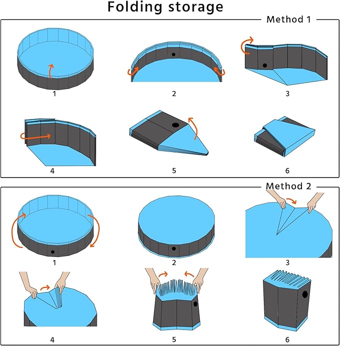 - Warm tips: Our professional pet swimming pool has a maximum water level inside of the wall. Do not exceed this line when you fill water. To prevent damaging the pool, remember to trim your dogs’ nails. To ensure the normal use, please place the pool on the flat and smooth ground without sharp objects. The last thing is that always put the swimming pool in the shade