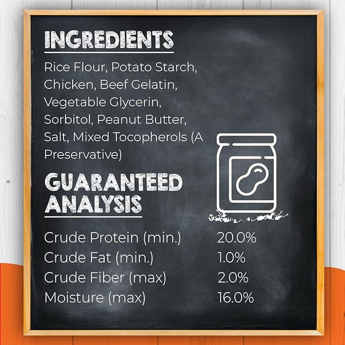 - GLUTEN FREE & MADE WITH REAL PEANUT BUTTER - Our healthy peanut butter chews are gluten-free and safe for your furry friend. Made with care and integrity; our healthy chews contain no artificial flavors, colors, or filler ingredients like corn, wheat, or soy. Canine Naturals ingredients are chosen because they're digestible, healthy, and have a flavor dogs love!
