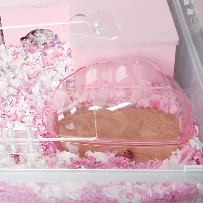 BUCATSTATE Hamster Sand Bath Kit Hamster Sand Bath Container Large Transparent Toilet with Scoop Set Dwarf Hamster Accessory for Small Animals(Pink, Large)