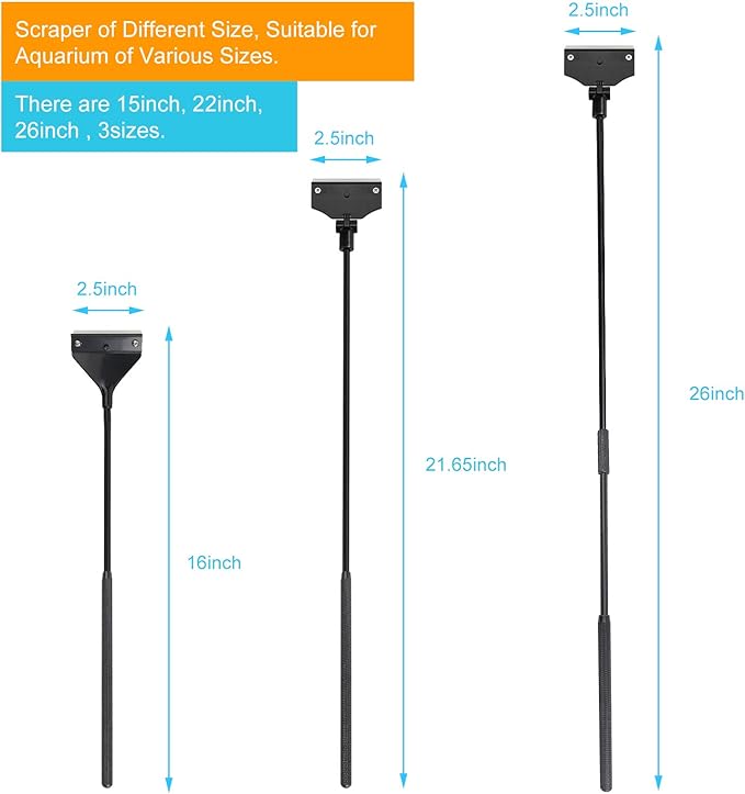 - Please choose the right length of scraper according to the height of your aquarium.For more spare blades, please search B08ZHJ5FLB.