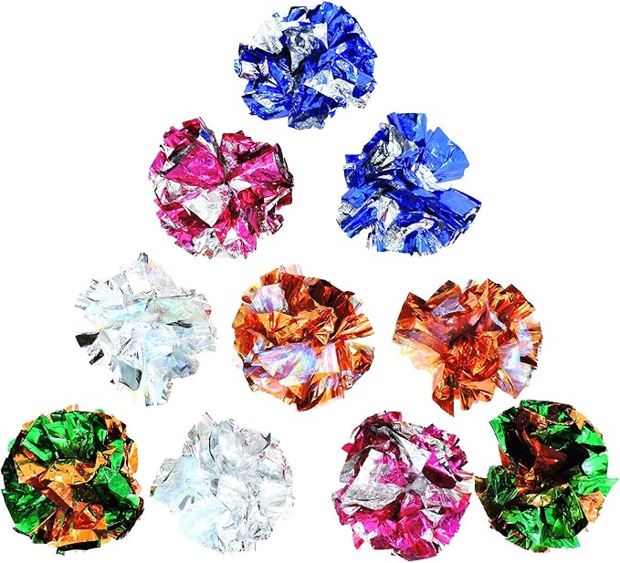 - Shiny Material to Inspire Cat’s Interests: Our kitten toys are made of bright metallic colors Mylar Material. 10pcs shiny and reflective cat balls will be good choice for your cats
