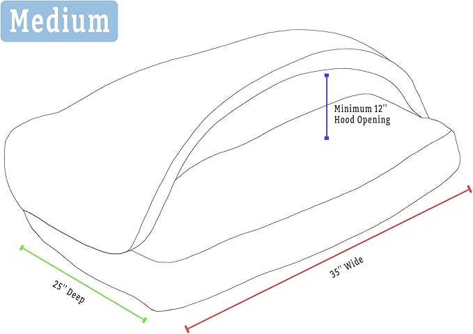 - Sizing: This dog bed measures 25" deep by 35" wide with a 4" sidewall, and about 8" total height with the hood, perfect for medium sized dogs. Includes a removable plastic tube to keep the hood open