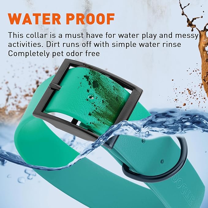 • Free Your Dog to romp in puddles and retrieve from lakes with the Dogline Biothane Waterproof Dog Collar. This water-repellent collar stays dry and odor-free, without shrinking or losing flexibility.