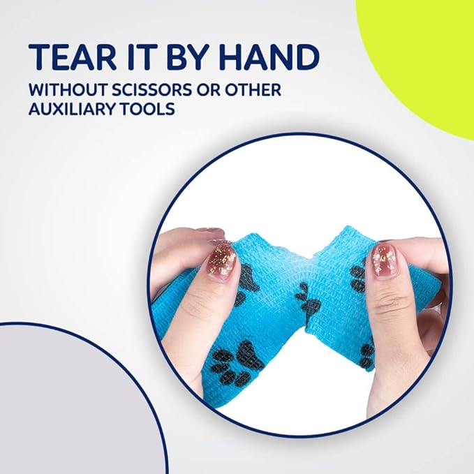 - [SELF-ADHESIVE]: WePet wrap sticks to itself but NOT to fur making it pain-free to pull off. Do not worry about any adhesive residue. It’s very easy to tear by hand.
