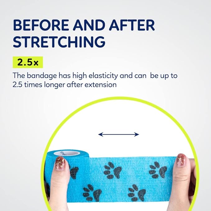 - [LIGHTWEIGHT BREATHABLE MATERIAL]: It is made from natural rubber latex. Porous fabric allows for ventilation so your pet’s skin can breathe freely underneath, which is good for the pet’s skin and helps healing better and faster. Each roll is individually wrapped in clear cellophane, clean and hygienic.