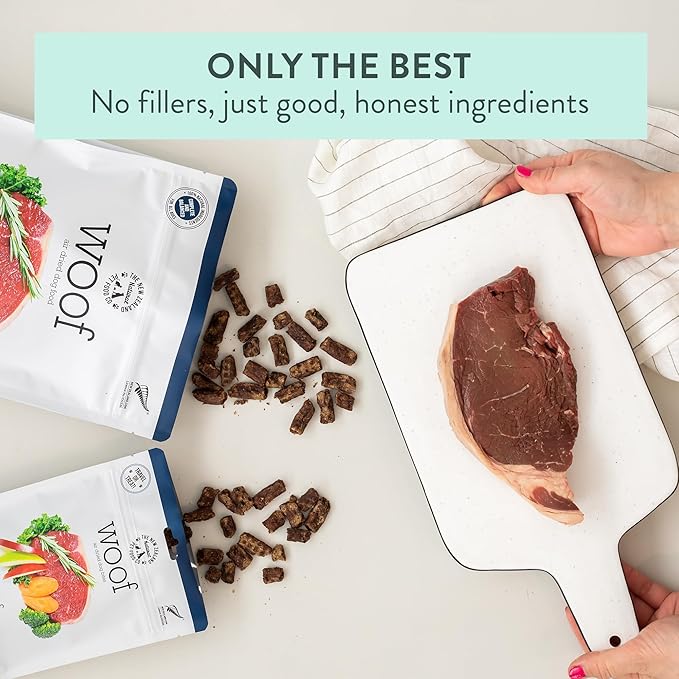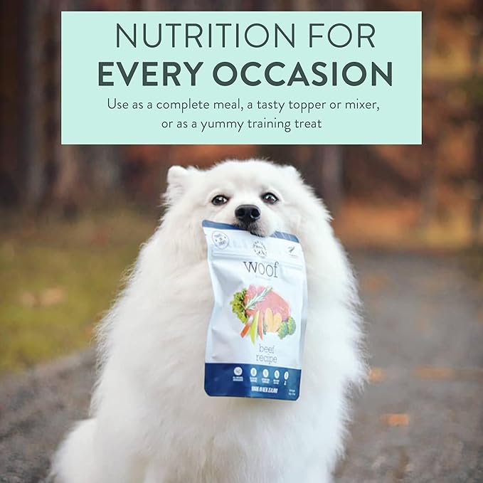 Woof - Air Dried Dog Food, Toppers for Dry Food, High Protein, Natural Dog Food, Limited Ingredient Recipe Dry, Beef, 3.5 oz