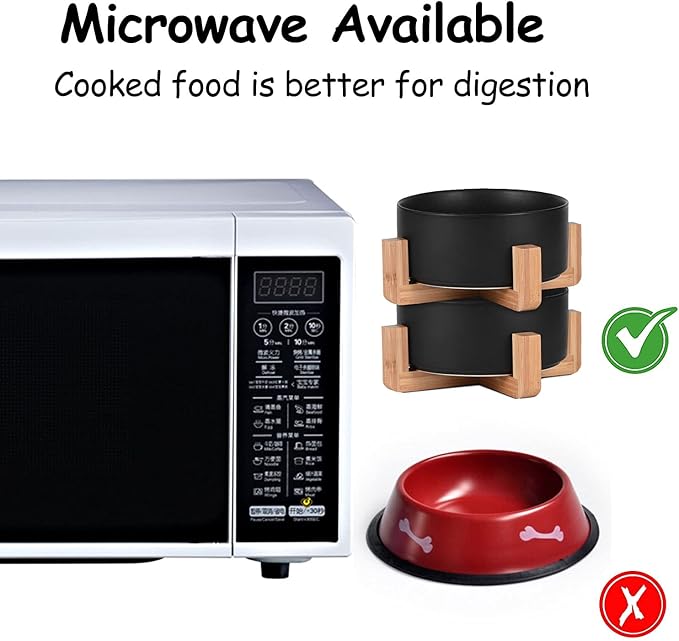 - DISHWASHER MICROWAVE SAFE - Ceramic pet bowls is made of Porcelain Ceramic with wood frame to keep from sliding on the floor. Ceramic cat dog bowls are high temperature ceramic, non-toxic durable. and the cat dog food water bowls conveniently dishwasherable so it can be easily cleaned. No Fuss.