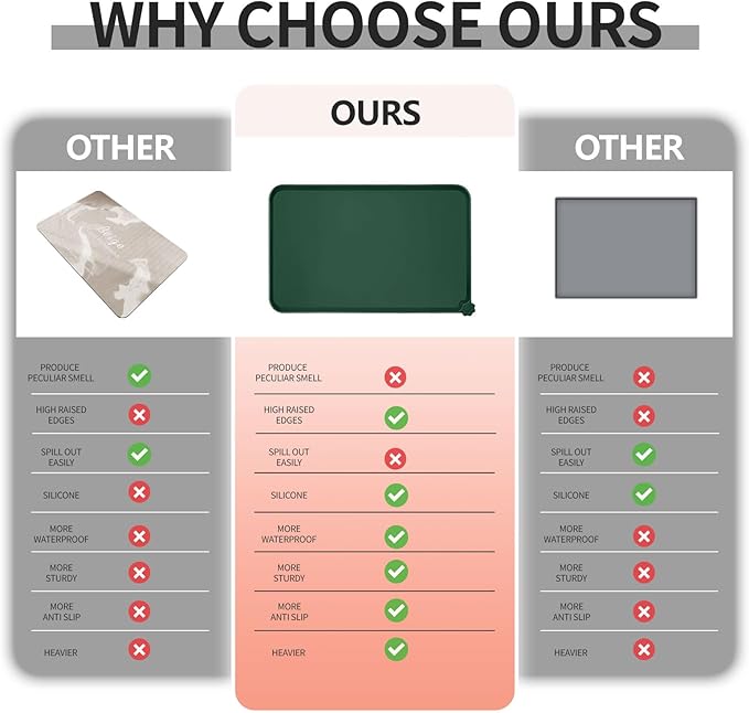• Anti-slip design: our non-slip pet feeding mat ensures stability for your pet's bowl, preventing any water stains or spills on the floor. Enjoy peace of mind when feeding your pet, knowing that their food stays in place