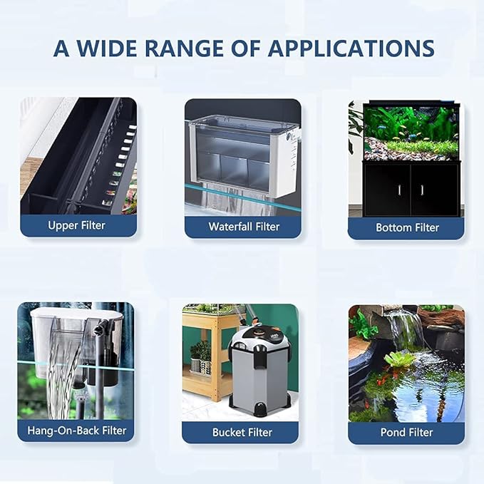 - 🐙【EASY TO USE】- Our aquarium filter media allows you to cut to fit any size filtration. Pads can be used in hang-on-back filters, canister filters, wet or dry filters, sumps, and pond filters. Perfect for freshwater tank, sea water tank, reef aquariums, fish tanks, shrimp tanks, aquaponics systems, turtle tanks, terrariums, water plants cylinder, and much more.