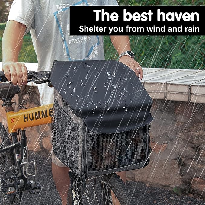 - ðãSKYLIGHT ANTI-ESCAPEã: â Wakytu multifunctional bicycle dog basket is topped by a mesh design skylight with a drawstring opening design that allows your pet to show its head and enjoy the scenery along the way. â¡Built-in adjustable safety rope buckle, fixed on the collar can prevent pets from escaping. ⢠Entrance zipper with locking buckle to avoid pets scratching to open the zipper.