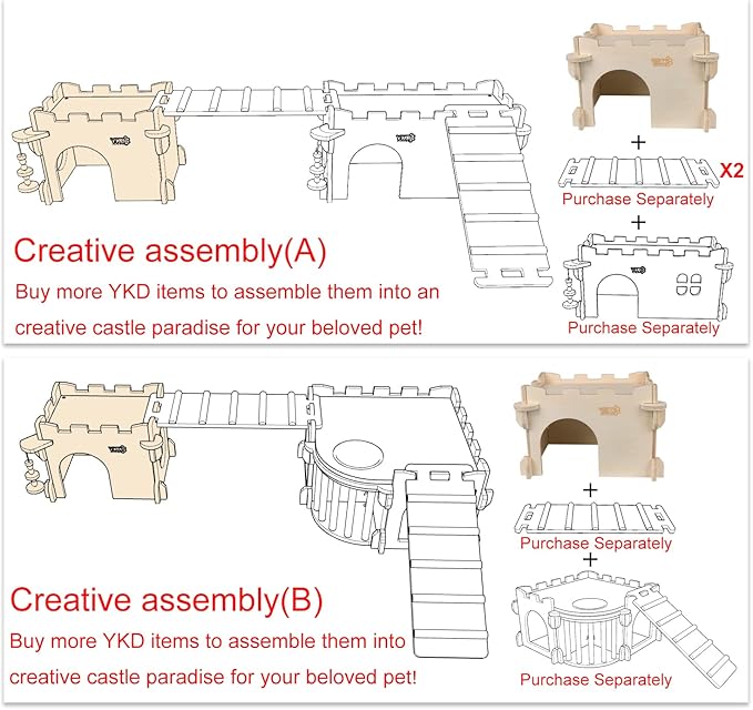- The house is mde from european imported birch plywood, which is very breathable & healthy for rodents, built by the tongue and groove method without nails, and be sanded each corner to smooth. Install easily without glue or nails to avoid the pet injuries. brings reliable & enjoyable living to keep your furry friend's well-being, chewable & durable toys for your pets.