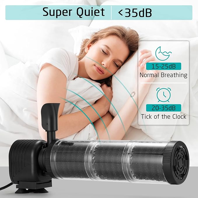 - Wide Application - 528 GPH (2000L/H) max flow rate, max lift height of 5.9ft. Fits a range of different size tanks, up to 170 gallons with a feature no more than 4.92ft in height. Can be used for freshwater or saltwater.