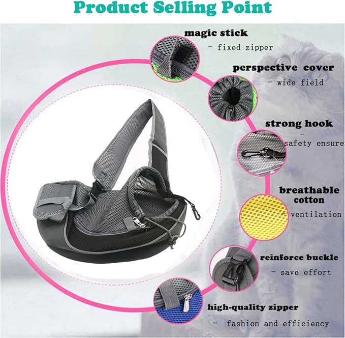 - 【Safe and Convenient】A safety buckle on the inside of the pet sling carrier (it can be connected to a collar) to prevent pets from jumping out. Magic sticker prevents the zipper from slipping and effectively increases safety. The firm buckle design on the shoulder strap is convenient to use and prevents the bag from being disconnected during use.