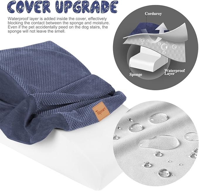 - Safer,Wider&Deeper Steps:Our dog stairs are excellent for those older dogs who are less mobile as they age or for cats with injuries. More wide and deep steps are helpful for reducing the strain that constantly jumping up and down onto lower bed,sofa can have on your pet's joints,and Topmart dog steps will not shake and slip during use. The cover made of corduroy is more frictional than other covers, pets will not slip on the stairs.