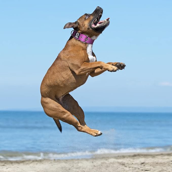 TSPRO Tactical Dog Collar 1.5 Inch Wide Thick Dog Collars with Heavy Duty Metal Buckle, Durable, Strong, Adjustable for Medium to Large Dogs (Purple M)