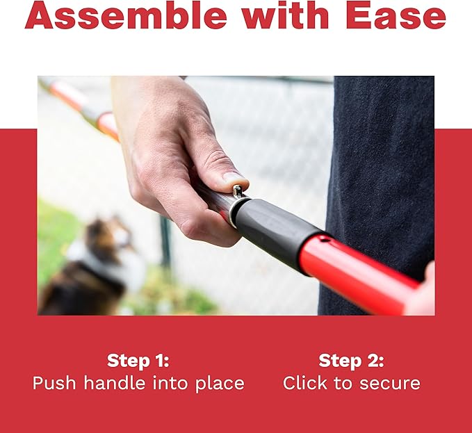 - Easy assembly, simple storage - Assembling the pooper scooper for medium dogs is a breeze out of the box and is as simple as a push and click. No extra tools needed! Push-pin installation adds extra durability compared to twist installation that unravels with use. Use the holes in the handle grip to store on the wall in your garage or tuck it away neatly in a backyard corner for convenient access.