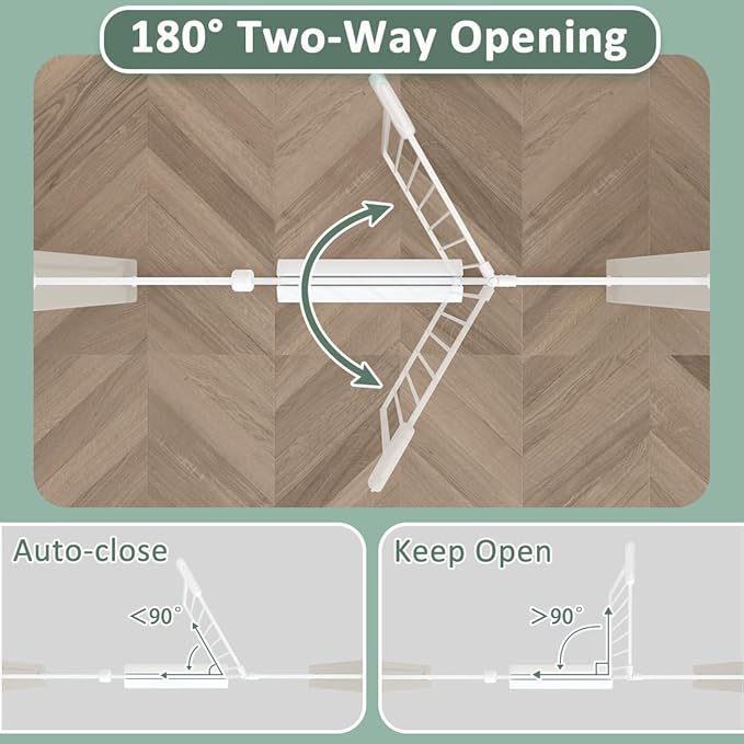 - 【BABY GATE WITH DOOR】 - The door can swing in both directions. Besides,the door of our baby gate has auto-close and auto-lock function. You don't need to worry about forgetting to close the door,it will auto-close when opens less than 90 degrees,You can open the door just with one hand.