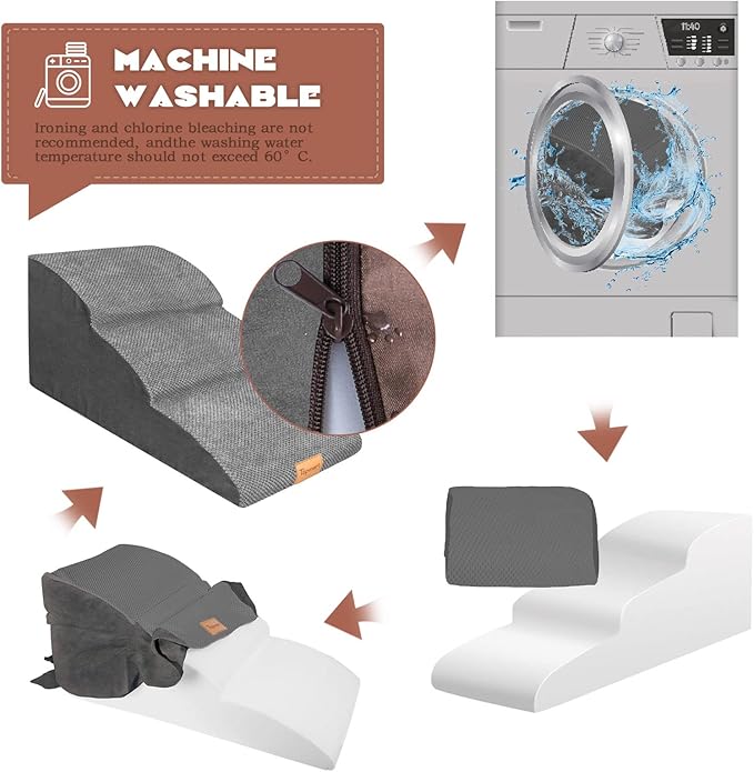 - Easy to Assembly & Clean: The stair cover is removable and machine-washable. Stair made of 30D High density foam,no frame,high rebound, not easy to lose shape. we recommend it for pets weighing less than 60 lbs.