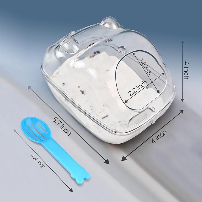 - 🐻 EASY TO CLEAN✔:Hamster sand bath container easy to open, smooth acrylic is easy to clean, rinse off with water and come out clean. You can easily take it out to clean and replace with clean hamster bathing sand at any time. hamster bathtub toilet,Keep your pet clean and healthy, reduce odor and keep your hamster cage clean and tidy.There is a spatula in the hamster sand bath kit,which is great for cleaning hamster sand.