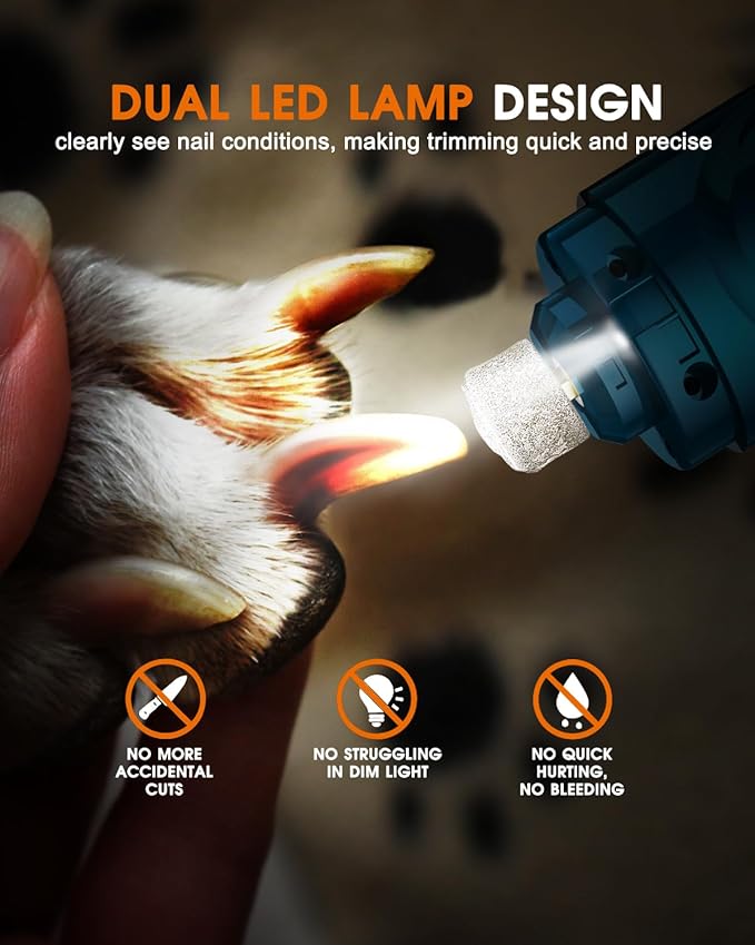 - 💰Grind Faster, Save More💰: Tired of spending $50 on a nail trim? Professional dog nail clipper and dog nail grinder are both included. Even for a new-beginner, the dog nails can ben filed at home like a pro, fast and comfortably. From today on, dog/cat persons can save at least $1000 per year with this pet nail tool!