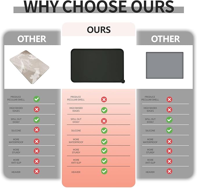• Various sizes available: our pet mats come in 5 different sizes - 18.5" x 11.5", 22" x 14", 24" x 16", 28" x 18", and 32" x 24". Suitable for all kinds of pets, from puppies to large pets, choose the perfect size for your furry friends and avoid messy spills at mealtime