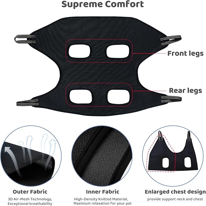 - π [ Comfortable and Soft ]: Using Double-layer fabric design, Inner fabric use High-density knitted material, and the outer uses 3D air-mesh technology. Besides, Thickened edge of the front and rear legs and excellent breathability can reduce friction to protect pets, and keep pet calm and maximum relaxation.
