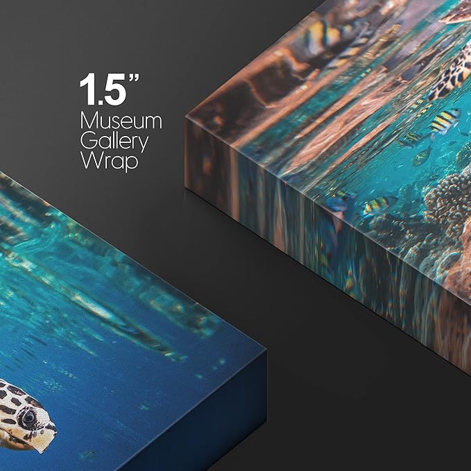wall26 Canvas Print Wall Art Tropical Turtle Coral Reef Deep Sea Dive Nature Animals Photography Realism Rustic Scenic Landscape Wilderness Earth Colorful for Living Room, Bedroom, Office - 12"x18"