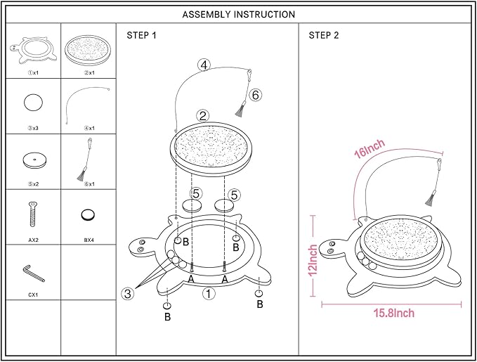 - Size & Easy to Install – The size of the tortoise shape cat scratcher mat: 15.75*11.42inch. Perfect for one or more cats. Easy assemble, the tools and instruction included. Less than 1 minutes to install.