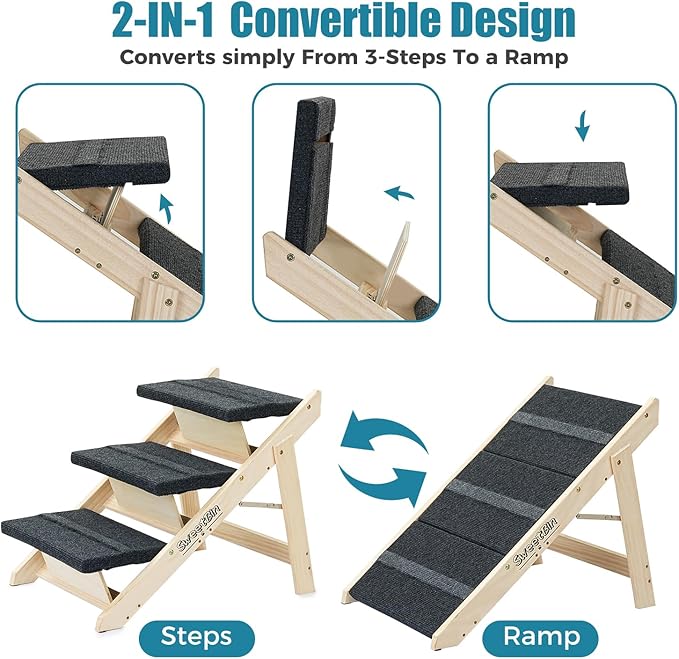 - 2-IN-1 CONVERTIBLE DESIGN: Converts simply from 2-steps to a ramp to make it easy for older or arthritic pets to reach sofas, beds, cars, and more. Suitable for old, weak and sick pets.