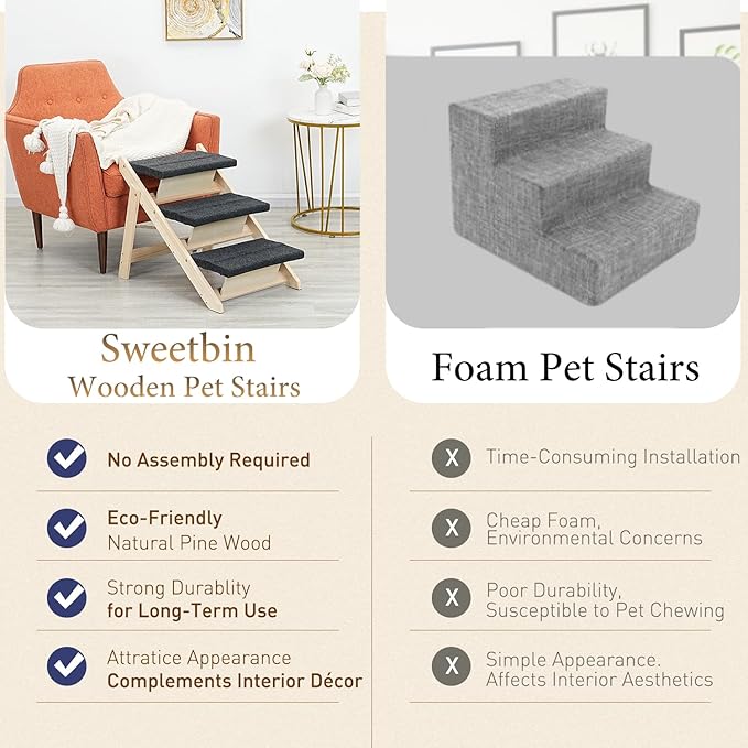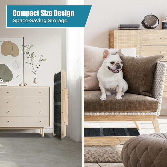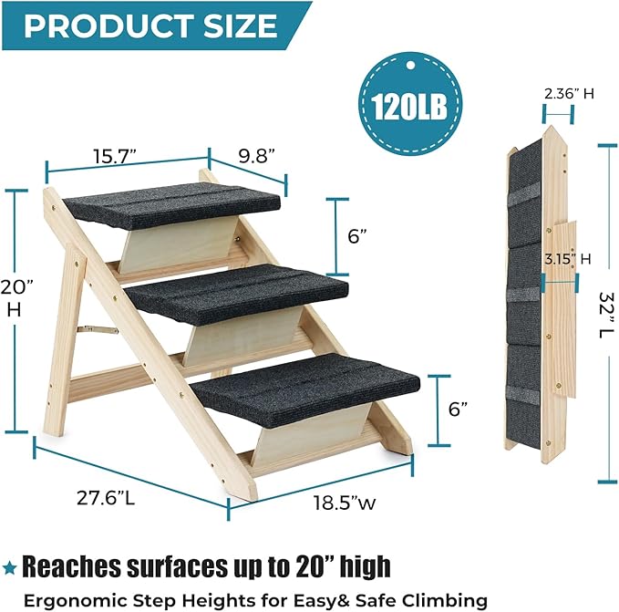 - STURDY AND SAFE: Sturdy Pine Wood construction for strong support. The ramps are independently safety tested and rated to support pets up to 120 Pounds.