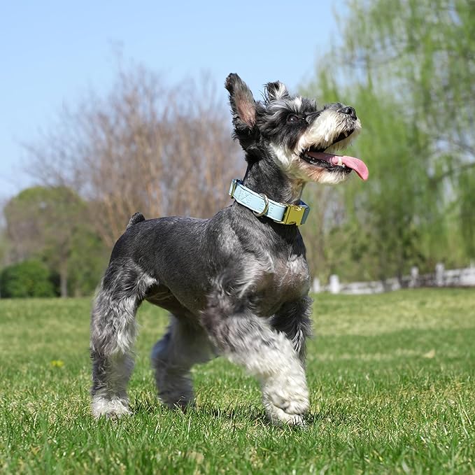 PET ARTIST Soft PU Leather Dog Collar for Small Dogs, Bright & Classic Nylon Padded Durable Dog Collar Leather with Quick Release Metal Buckle Adjustable for Male Dogs, Neck Fit 9-14"