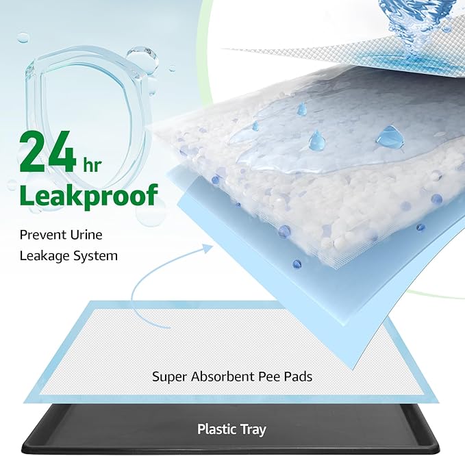 - 5 DISPOSABLE PEE PADS: The artificial grass for dogs potty come with an incredible dog pee pad solution. Advanced absorption technology from Japan,when the drainage holes get the liquids to travel downwards, Oiyeefo puppy pee pad catch the urine and absorb it quickly, so the extreme odor-causing issues can be easily curbed.