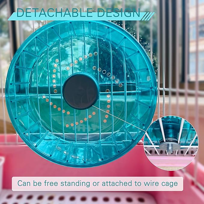 - STURDY - You can complete the installation simply by tightening the wheels and inserting the base without complicated process, placed directly on the flat floor of your pet's home. The wheel can be used either free-standing, with the supplied stand, or be attached to wire hamster homes.