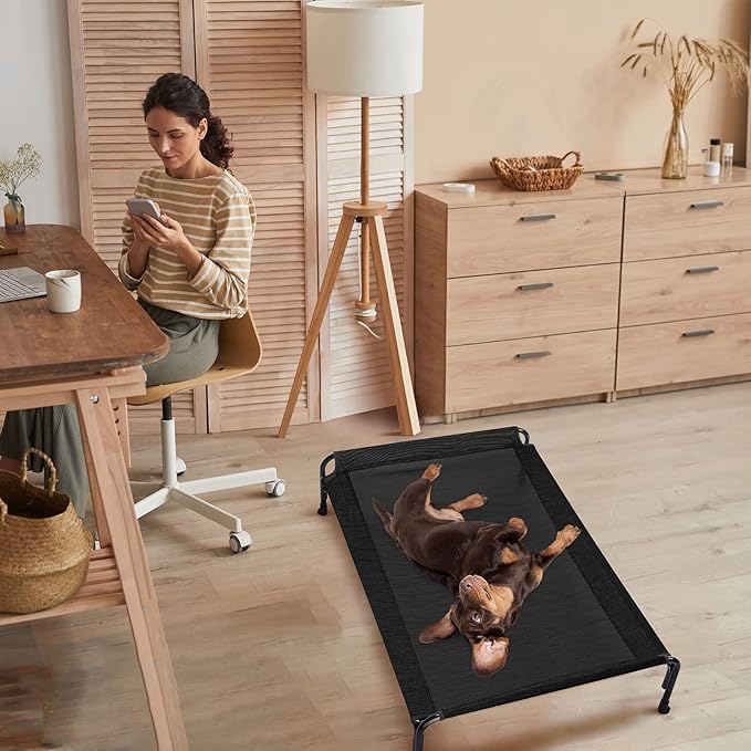 Veehoo Outdoor Elevated Dog Bed, Raised Dog Cot for Small Medium Dogs, Cooling Washable Waterproof Pet Hammock Beds with Slope Headrest, Breathable Mesh and Sturdy Frame, M, Black, CWC2204