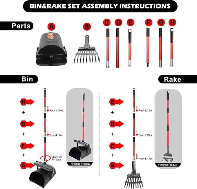 - Easy assembly, Simple Storage:Assembling the pooper scooper is a breeze out of the box and is as simple as a push and click.Aluminum handle is lighter and not rust.