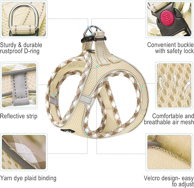 haapaw Dog Harness with Leash Set, No Pull Adjustable Reflective Step-in Puppy Harness with Thickened Padded Vest for Extra-Small/Small Medium Dogs
