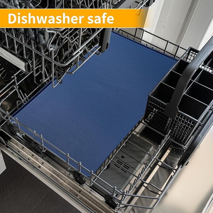 Ptlom Silicone Pet Placemat for Dog and Cat, Waterproof Non-Slip Pet Feeding Bowl Mats for Food and Water, Small Medium Large Tray Mat Prevent Residues from Spilling to Floor, Navy Blue, 24.5" 16.5"