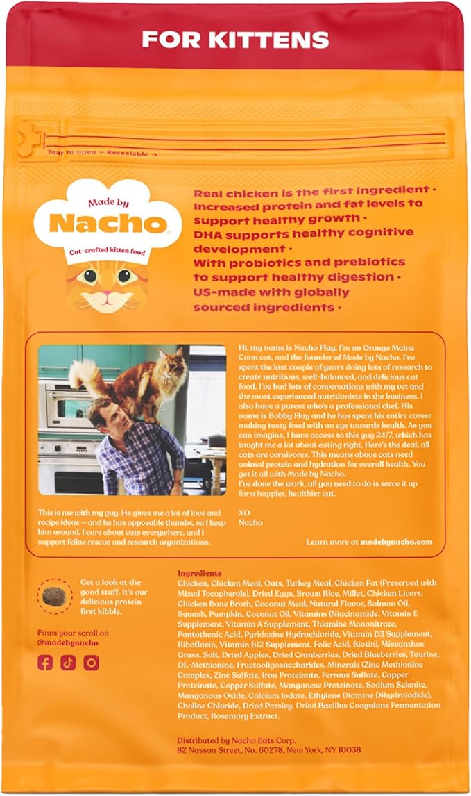 Made by Nacho Kitten Dry Kibble Infused with Bone Broth, Healthy High Protein Cat Food, Cage-Free Chicken and Chicken Liver, 2lb Bag