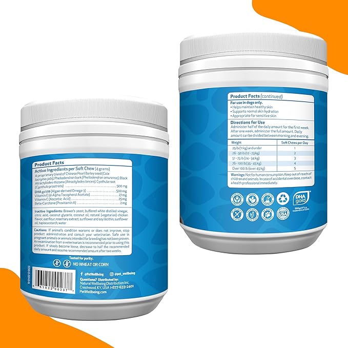 Pet Wellbeing Itch & Scratch Chewies for Dogs - Supports Healthy Itch Response to Occasional Skin Allergies, Skin Health, Chinese Pearl Barley, Phellodendron - Veterinarian-Formulated 90 Soft Chews