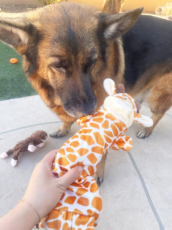 - SUPER VALUE &GREAT FUN: Includes 5 Stuffingless Animal Dog Toy. Each has an openning to place a plastic bottle inside for dogs who love chewing bottles or just some added fun.