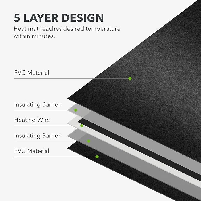 - ENERGY EFFICIENT AND SPACE-SAVING: The BN-LINK Heating Pad is both compact and packs a punch. The heating wire and insulation allows the mat to reach the desired temperatures within minutes yet only uses 16 Watts to help you save on electricity costs.