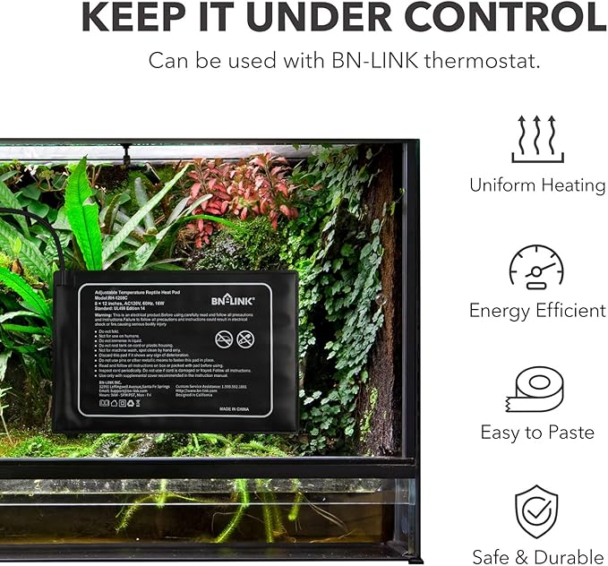 - GREAT UTILITY: The BN-LINK Heating Pad for Reptiles is great for keeping your reptile tank warm, but never scorched. It’s also great for amphibian, small animal, or plant terrariums.