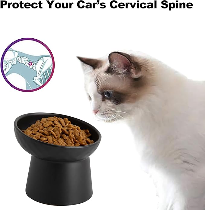 - Reliable Material - This cat bowls set are made of premium ceramic, dishwasher and microwave safe. Heavy weight of round base of the bowl ensures stability, makes for secure eating without the mess of tipping over. Premium porcelain material can prevent the cat's chin from turning black.