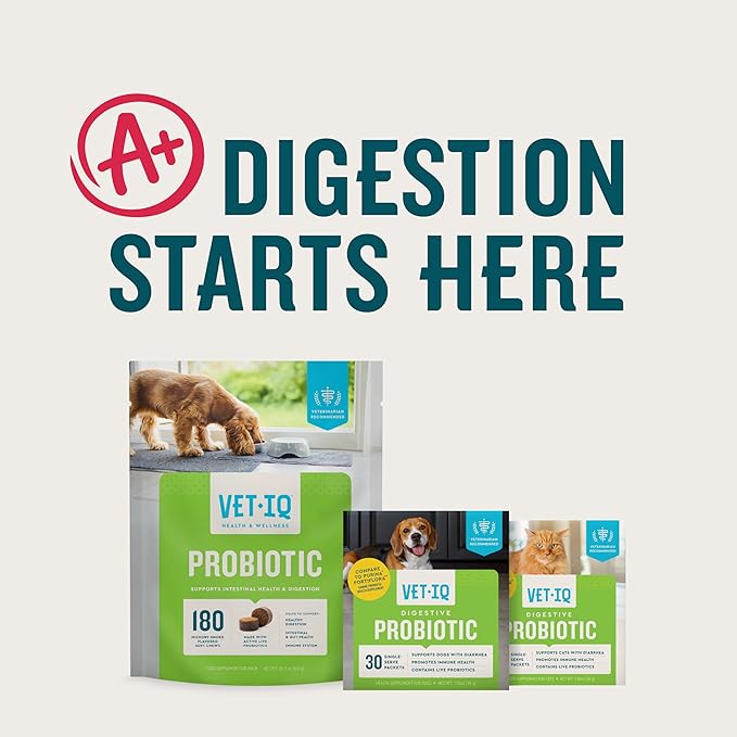 - SUPPORTS NORMAL BOWEL FUNCTION: You want to see your dog moving happily and healthy. VetIQ Probiotic helps maintain healthy digestive cycles to support normal bowel functions in your dog