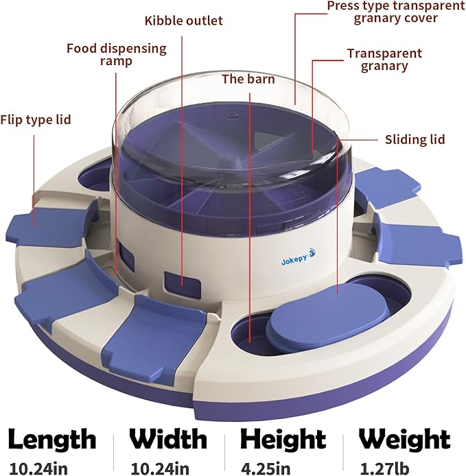 - đŸăScientifically Designed Slow FeederăEach barn holds a small amount of food and requires the dog to open the lid. This slows down the eating pace, increases the difficulty and time for dogs to get food, promoting healthier digestion.