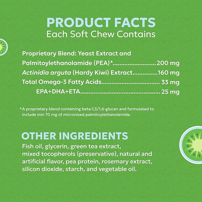 - Active Ingredients : Actinidia arguta (Hardy Kiwi) Extract 565 mg, Proprietary Blend: Yeast and Wheat Extracts* 455 mg, Total Omega-3 Fatty Acids 60 mg, Eicosapentaenoic Acid (EPA) 25 mg, Docosahexaenoic Acid (DHA) 15 mg, Eicosatetraenoic Acid (ETA) 1,000 mcg, Gamma-linolenic Acid (GLA) 60 mg. *A proprietary blend containing phytoceramides and beta (1,3)/(1,6) glucan MacroGard® Actinidia arguta (Hardy Kiwi) Extract 565 mg, Proprietary Blend: Yeast and Wheat Extracts* 455 mg, Total Omega-3 Fatty Acids 60 mg, E… See more