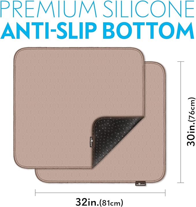 Paw Inspired Washable Pee Pads for Dogs (2 Pack), Leakproof, Non-Slip Reusable Puppy Pads for Potty Training, Whelping, Waterproof Mat (32x30 Inch, Pack of 2)