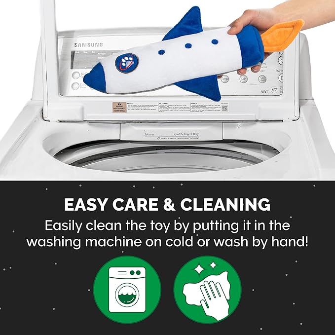 Furhaven Plush Cat Toy w/ Catnip for Indoor Cats, Washable & Durable w/ Refillable Catnip Pocket - Rocket Kicker Plush Toy - White/Blue, One Size