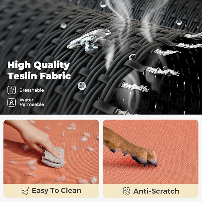 - Stay Cool Ever! Crafted of Textilene mesh fabric, the dog cot allows air to flow, keeping your pets cool while they relax in the heat. Also allow water or urine to go thru, no puddles formed. Besides, the teslin mesh features heat-resistance, sturdy, and breathability.