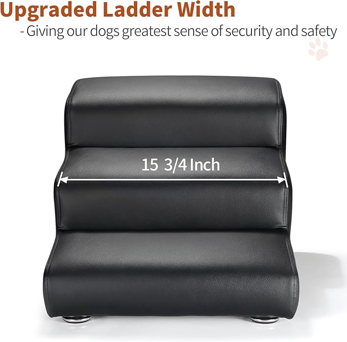 Senneny Black Faux Leather Dog Stairs, for Pets up to 150 lbs, Waterproof, Scratch Resistant Pet Steps/Stairs with High Density Foam and Detachable Wooden Legs, Black, 3 Step